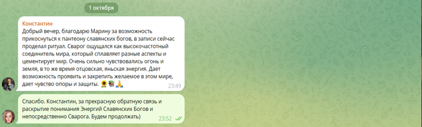 Ритуал Бога Сварога 26 сентября 2025, пятница, в 21:00 мск Пантеон славянских Богов необъятен, и назвать все имена невозможно, так как каждое имя это великое деяние на просторах Вселенной Сварог — небесный кузнец и судья Богов Бог Сварог даёт людям: Жизнь, Движение, Творчество, Развитие, Знания, а так же воинское искусство в борьбе с силами тьмы, зла и хаоса Он покровитель умелых мастеров, Бог семейных союзов и справедливый Судья Проводит Командор Маракеш - Командорство Фортуна Бесплатно Ограничений для участия нет Регистрация Zoom 1. Настройка на 12А, помощь высших сил, активизация канала связи. 2. Введение в Сефиру Гебурах - мир старых Богов. 3. Включение в славянский Пантеон. 4. Формирование пространства Храма, работа в состояние жреца (работа с каналом Бога) или прихожанина (взаимодействие с Богом). 5. Включение в канал Бога. 6. Работа с полярностью, женственность/мужественность, фиксация в своём поле (выход из медиумизма). 7. Во время Ритуала обращаемся к Богу Сварогу * о помощи в работе: Сварог поможет, коли и сами вы готовы потрудиться, если желаете стать успешным в своём деле, обрести достаток своим трудом * о хороших отношениях с родными, о помощи в укреплении семьи * для справедливого суда, для решения вопросов в вашу пользу 8. Фиксация полученных состояний на мандале, создание талисмана. Дополнительно на занятии проводится следующая работа: 1. Проработка и раскрутка/подъём энергии по всем чакрам. 2. Работа с физическим и ментальными телами, с энергетикой (чистка, убирание блоков, установка защит). 3. Усиление энергетического потенциала организма (работа с 17А, выравнивание гармонизация Анахата чакры, включение в канал животного силы). 4. Работа с Девизами и Заклинаниями Магистра. 5. Создание ментального интеграла - призрака и наработка опыта выхода в Сатори. 6. Усиление левого сдвига и работа с Магическим Договором. 7. Обсуждение результатов и ответы на вопросы. Более подробная информация о предстоящем занятии (работа с каким Богом/Богиней и качествами) будет размещаться в группе Телеграмм (выходим из Скайпа). Группа обсуждений в Телеграмм Даты проведения следующих Ритуалов в расписании Расписание Личное сообщение: Инна ТГ @InnaIneya Марина Телеграмм @Marina_Marakesh- Отчёты по работе с Браслетом Сета
